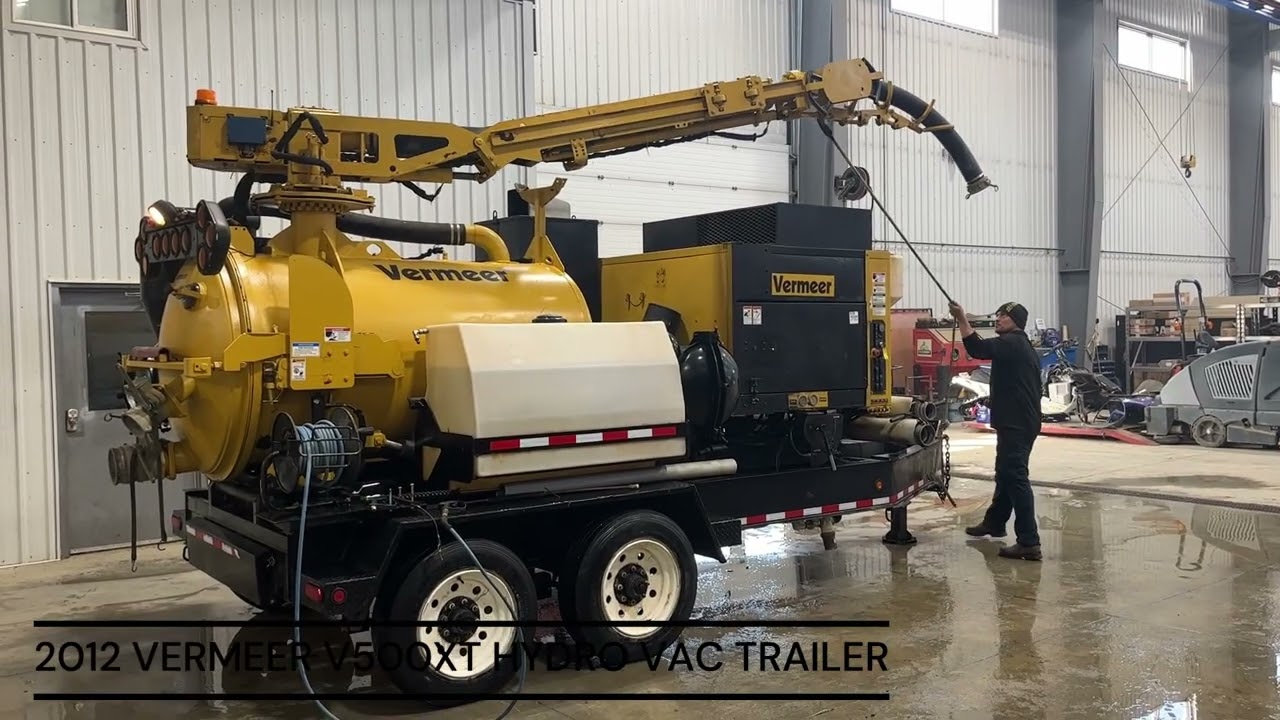 2012 Vermeer V500XT hydro vacuum is powered by a Kubota diesel engine. Unit has cordless rotating boom suction line and on-board heated power washer. 500-gal tank . Hydraulic tailgate with manual locks. Comes extra wands , nose’s and accessories. Hour meter reads 61.