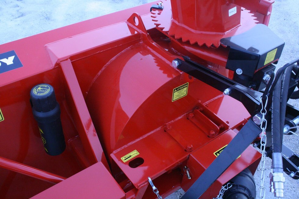 • Hydraulic cylinder and hose support for chute deflector adjustment.