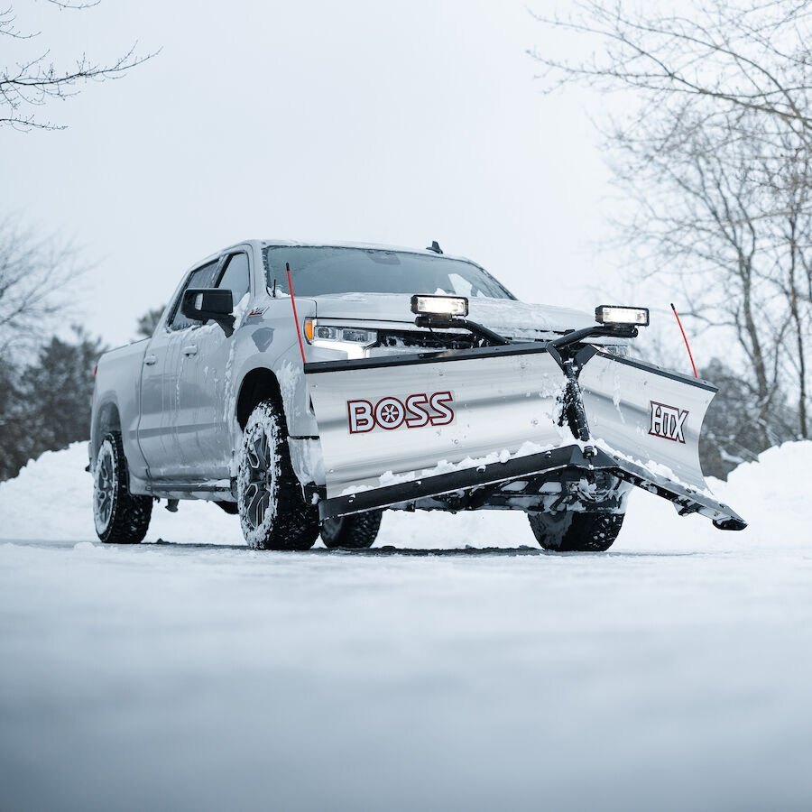 KEEP ‘EM OPEN in style with the Stainless Steel BOSS HTX V. Constructed with the highest quality, rust- and corrosion-resistant stainless steel, this plow makes maintenance easier so you can focus on tackling Mother Nature with your half-ton truck. The BOSS HTX V plow's flared blade wings and enhanced curl design throw snow higher and farther than conventional straight-blade snowplows, delivering unmatched efficiency and control season after season. Engineered to protect both you and your equipment, the HTX V features a full moldboard trip system that absorbs the impact when obstacles are encountered. The full trip system allows the entire blade to trip forward, reducing stress on your plow and truck. This design cushions the impact, minimizing damage and ensuring your plow’s longevity through the toughest winter conditions.