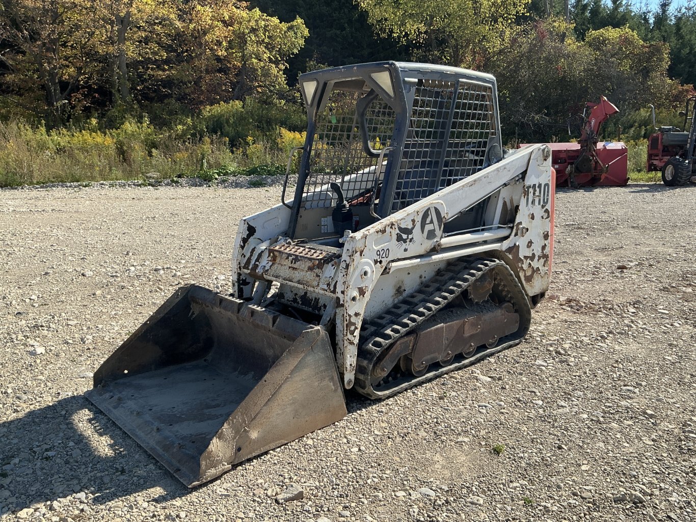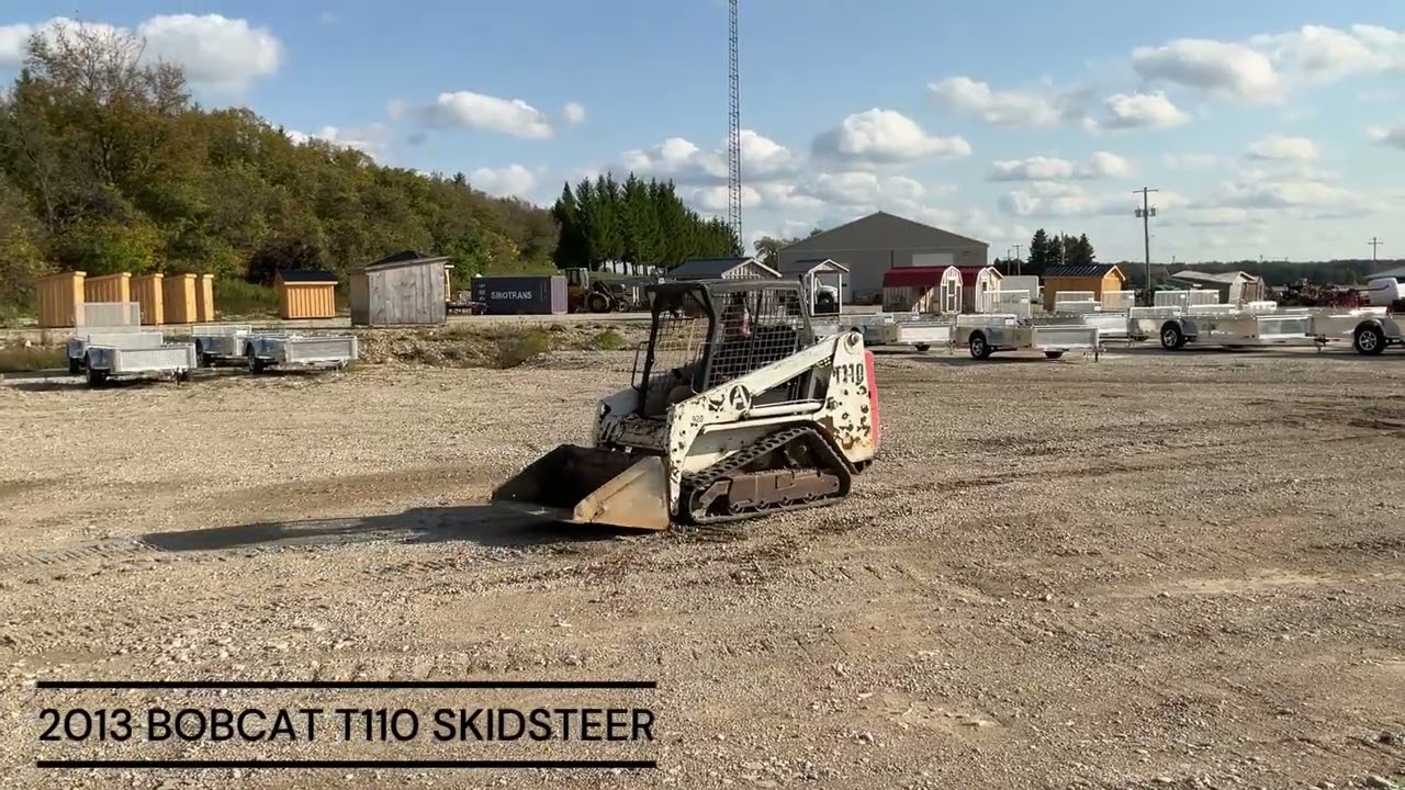 2013 Bobcat T110 skidsteer powered by a 41hp diesel engine. Iso and h pattern controls. manual quick connect bucket and auxiliary hydraulics. Hour meter reads 2873.
