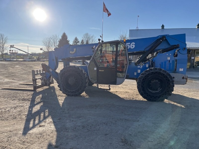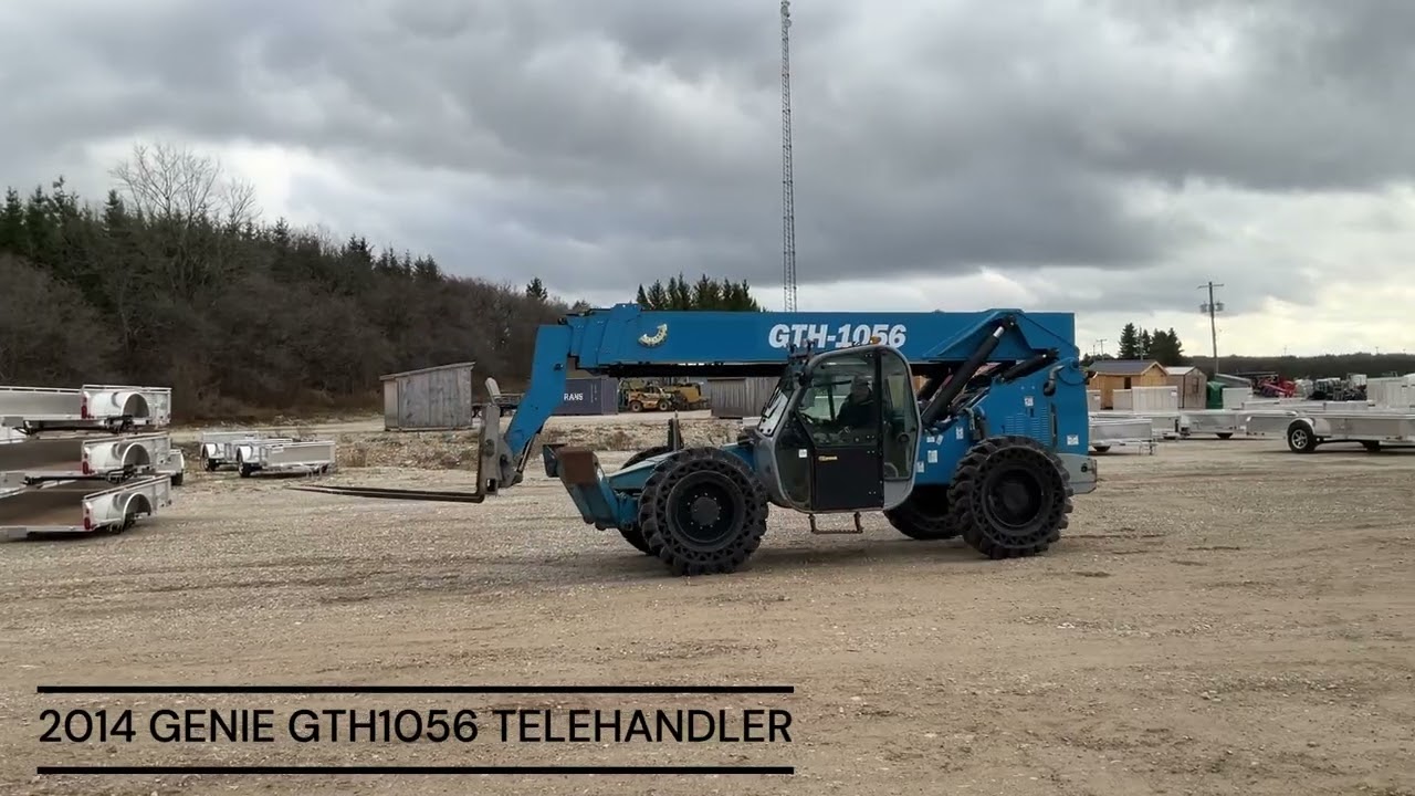 2014 Genie GTH 1056 zoom boom powered by Duetz diesel engine. Enclosed heated cab with glass intact. Max height of 56’ and max forward reach of 40’. Soild air tires. Max lift of 10000lbs. Machine weights about 34300lbs. Hour meter reads 6093.