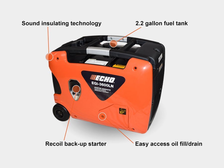 Everything but the noise. The EGi-3600LN low-noise generator/inverter produces ample power without the hassles associated with some generators. With ultra-quiet operation, push-button electric starts, and auto-idle fuel efficiency, it’s an ideal solution for emergency home power or portable off-grid power.