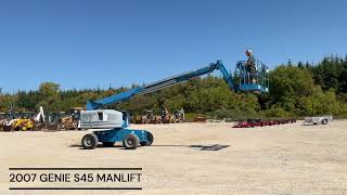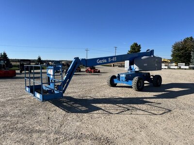 2007 Genie S-45 straight boom with jib. This boom lift has a platform height of 45 feet giving 51 feet working height and 36 feet outreach. 4WD...