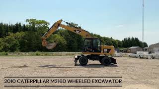 2010 Cat M316D wheel excavator is powered by a 158 hp Caterpillar diesel engine. Enclosed heated cab with all glass intact with A C. Machine has...
