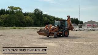 2010 Case 580 Super N is powered by a 97hp turbo diesel engine. 4X4 with 4 speed transmission. Enclosed heated cab. 4 stick controls. Equipped with...