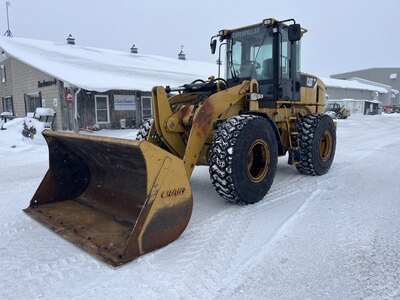 2009 Cat 928H pay loader powered by a 150hp cat diesel engine. Enclosed heated cab with all glass intact. Equipped with front hydraulic quick connect...