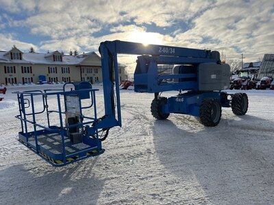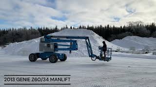 Articulating man lift, 2013 Genie model Z60/34. This boom lift has a platform height of 60 feet giving 66 feet working height and 36 feet outreach....