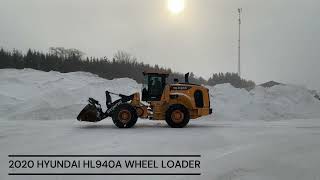 2020 Hydundai HL940A pay loader is powered by a 154Hp Cummins diesel engine. Enclosed heated cab with glass intact. Unit weights about 30,000lbs....