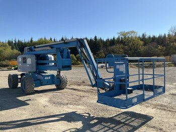 Articulating man lift, 2007Genie model Z60/34. This boom lift has a platform height of 60 feet giving 66 feet working height and 36 feet outreach. 4WD driveline and powered by a Ford gas engine. Machine weighs around 24,000 lbs. Valid structural sticker till Aug 2027. Hour meter show 4096.